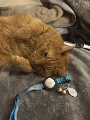 Our collar ensures your cat's safety with reflective strips and a secure AirTag holder, offering peace of mind and comfort for both you and your pet.